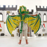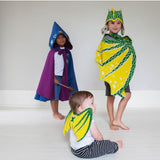 Who's going to train this Dragon? These heirloom quality wings will let your lil dragon's imagination run wild! Green on green is bold & perfect for boys or girls. Adjustable hook & loop neck closure & double stitched hand grips.