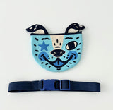 The Blue Dog Belt Bag- Hands free and fashionable this fun keepsake fanny pack will store your favorite goodies. Measures 6"x7" with zipper closure and belt loops with colorful webbing. 100 % cotton canvas with water based inks. Comes with a navy 1" wide webbing belt with triglide adjustable closure. Fits up to a 30" waist.