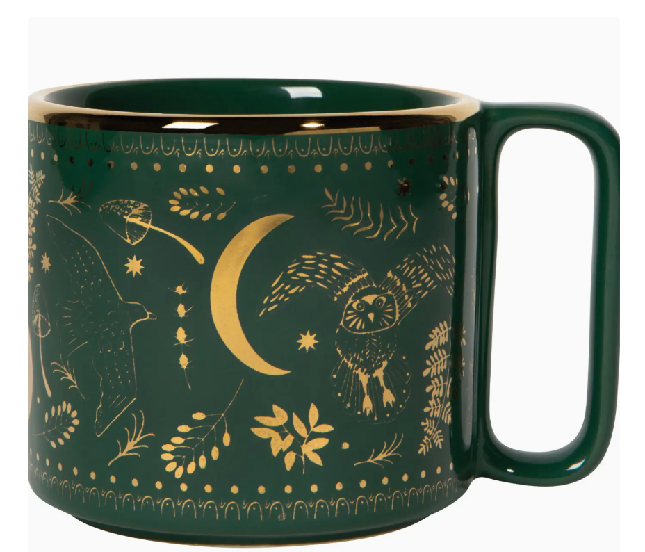 Not too big, not too small - the Moonlit Midi Studio mug is just the right size to fill your cup with some inspiration. Gaze up to see the night sky illuminated by the moon and stars in this design from Danica Studio while gold metallic detailing shines, evoking the enchantment of a nocturnal landscape. Dimensions: DIA3.5 x H3.125in Material: 100% Stoneware Care Instructions: Hand wash only Capacity: 11 oz
