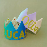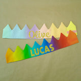Everyone needs a crown with your name on it! These precious, screen printed canvas crowns are perfect for dress up, birthdays or just your average Tuesday. Choose from Primary or Pastel Rainbow AND Cursive or Block letters. Add your name (up to 10 letters)