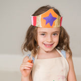 Paint your own Super Hero Cuffs. Kit includes one of our heavy duty canvas cuffs OR tiara, fabric paint and paint brush. Both the tiara and cuffs are reversible for 2 different looks. Cuffs have velcro to fit ages 3 + up. Adult supervision is advised. Fabric paint will stay in fabric so aprons are required! Available in pastel or primary paint colors.