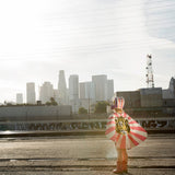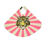 Let your inner Big Cat loose in this precious Tiger cape. Pink/Gold/Black, made from natural cotton and eco- friendly ink, this heirloom quality handprinted cape will last for years. Black lining and double stitched velcro closure. Cape measures 33" at widest and 19" from back of neck. It mixes and matches perfectly with our other fun dress up wear!