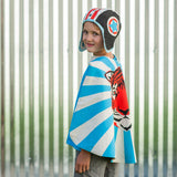Play Hard and use your imagination! This Super Awesome dress up set includes a fierce tiger cape & 'moto hat'. Perfect for your little Evil Kinevil or Retro Rocker!